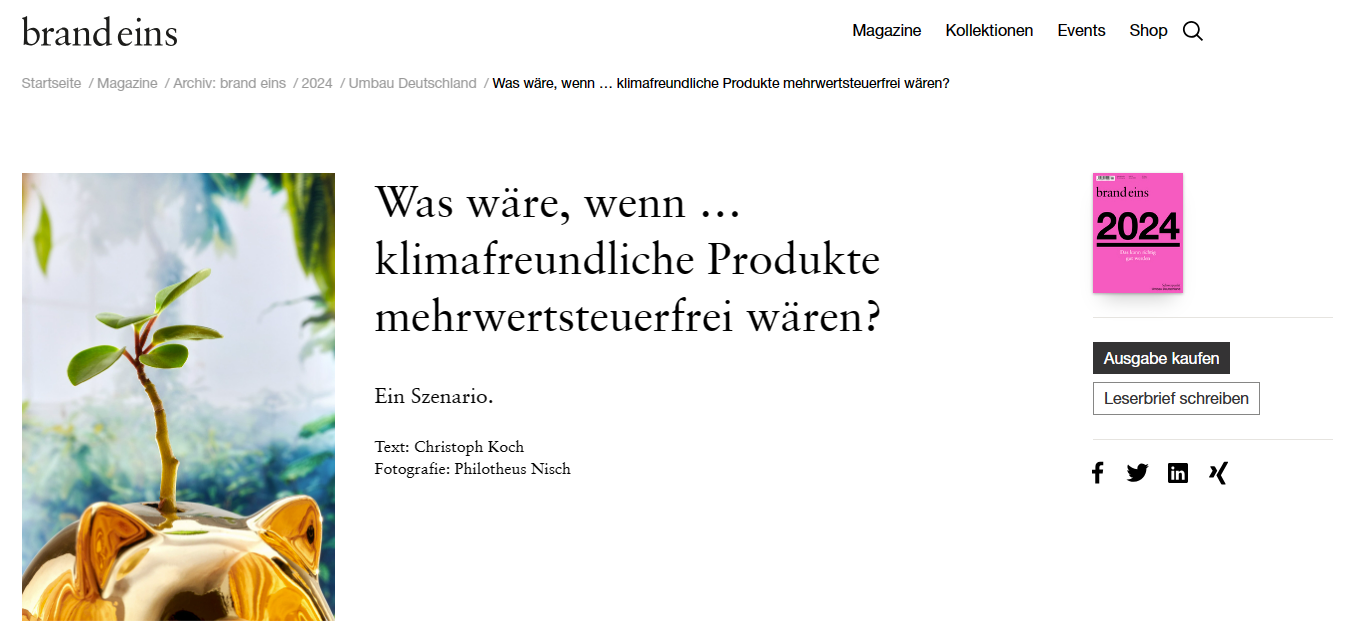 Brandeins - Carl Mühlbach über Mehrwertsteuer und Klimafreundlichkeit