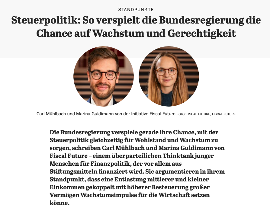 Mit welcher Steuerpolitik kann die neue Bundesregierung für mehr Wachstum und Gerechtigkeit sorgen? Darüber schreiben Carl Mühlbach und Marina Guldimann in ihrem Standpunkt für den Tagesspiegel Background Sustainable Finance.