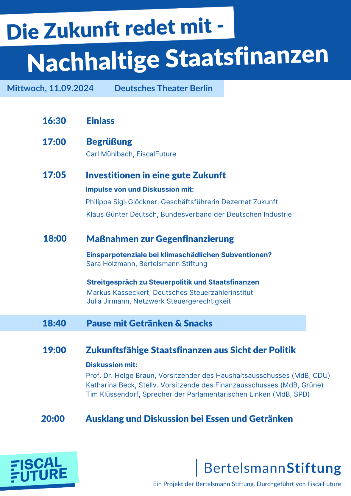 Eventreihe zur Finanzierung der Transformation: "Die Zukunft redet mit - zu nachhaltigen Staatsfinanzen" (3/4)
