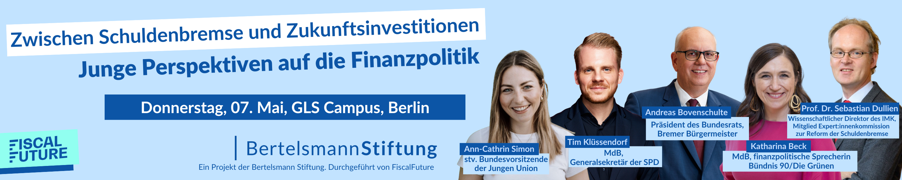 Das wollen wir ändern! Bei der Veranstaltung der Bertelsmann Stiftung, durchgeführt von FiscalFuture, bringen wir mehr als 150 junge Menschen in den direkten Austausch mit Politiker:innen und finanzpolitischen Expert:innen und diskutieren gemeinsam!